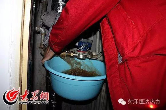 任永輝從暖氣管道里沖洗出大量臟水