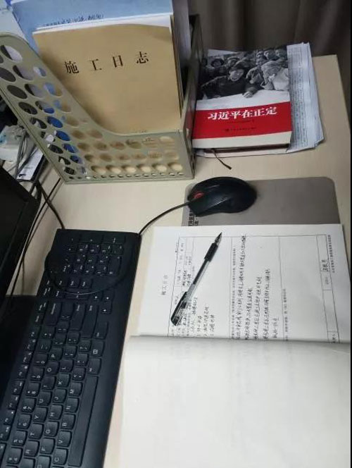在畢敬賢的工作桌上,整齊地放著這樣一本本的施工日志,里面詳細(xì)記錄著各個工地每天的巡查情況,施工進(jìn)度、存在問題、意見建議、天氣影響等等,在備注處,還時不時有些他在工程技術(shù)和監(jiān)督管理方面的心得體會。我們發(fā)現(xiàn),很多個周六周日的時間,他都放棄了休息,或忙碌在項目工地上,或巡視在一線管網(wǎng),或風(fēng)風(fēng)火火奔赴搶修現(xiàn)場。