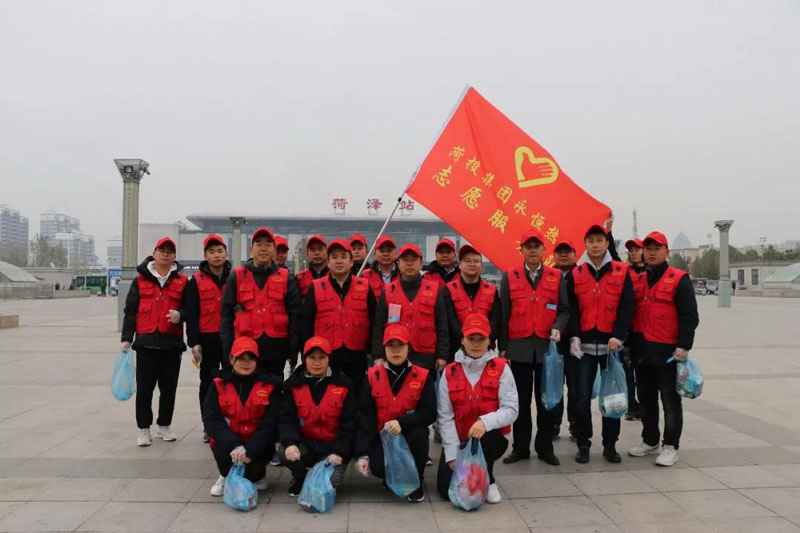 清晨7時許,天空還下著蒙蒙細雨,菏澤永恒熱力志愿者早已集結(jié)完畢,身著整齊的志愿者服裝,手拿垃圾袋、小鏟子、宣傳冊,在副董事長田濤同志的帶領(lǐng)下,大家從公司出發(fā),一路經(jīng)人民路中華路行至火車站再折返。