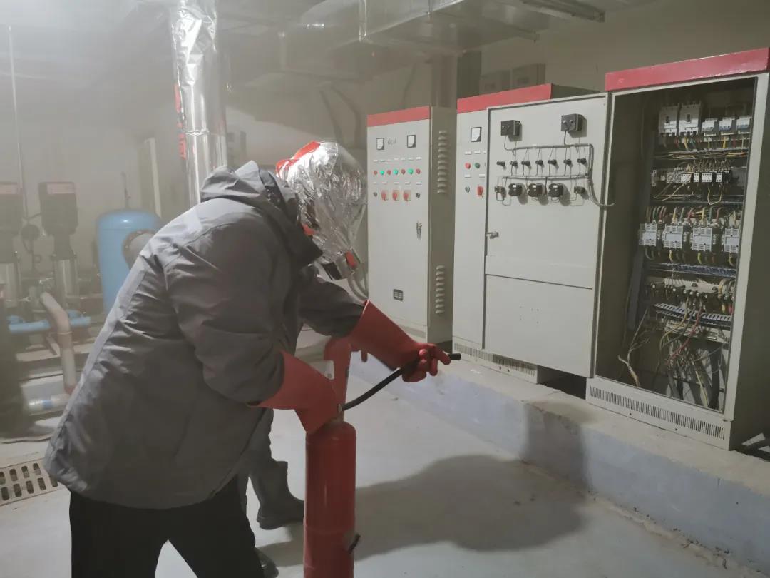 上午9時(shí)30分,劉承軍宣布應(yīng)急演練開始。本次演練模擬換熱站著火場(chǎng)景,小區(qū)管理員在對(duì)換熱站例行巡檢時(shí)發(fā)現(xiàn),換熱站有黑煙冒出,站內(nèi)出現(xiàn)火情,他當(dāng)即斷開換熱站總電源,立即將事故具體位置、現(xiàn)場(chǎng)情況電話通知運(yùn)營管理部部長和轄區(qū)運(yùn)營管理組組長。事故發(fā)生后,運(yùn)營管理部立即啟動(dòng)了應(yīng)急預(yù)案,在應(yīng)急處置領(lǐng)導(dǎo)小組的統(tǒng)一指揮下,大家各負(fù)其責(zé),有序配合。首先安排小區(qū)管理員做好現(xiàn)場(chǎng)警戒,然后組織搶險(xiǎn)人員迅速到現(xiàn)場(chǎng)采取有效措施,佩戴防毒面罩,使用干粉滅火器撲滅火情,最后結(jié)合督查安監(jiān)部對(duì)華僑城小區(qū)2期供暖設(shè)備進(jìn)行安全隱患大排查,對(duì)存在安全隱患現(xiàn)場(chǎng)整改。