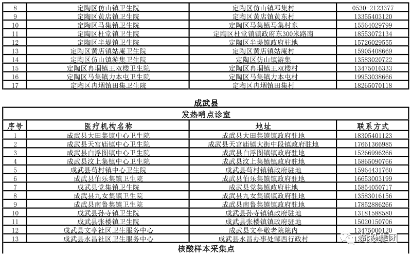 附件:菏澤市設有發(fā)熱哨點診室的基層醫(yī)療衛(wèi)生機構和核酸樣本采集點名單