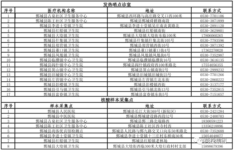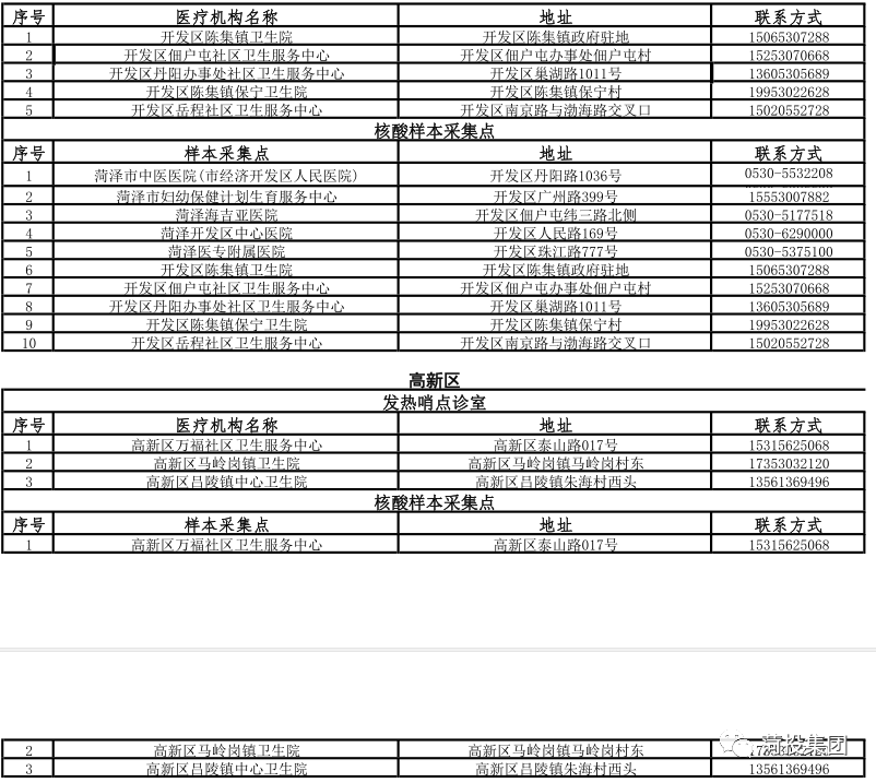 關于公布菏澤市設有發(fā)熱哨點診室的基層醫(yī)療衛(wèi)生機構和核酸樣本采集點名單的通知